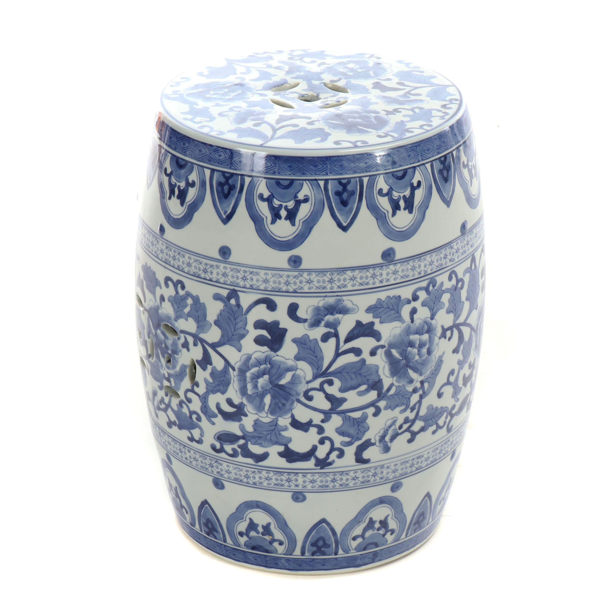 East Asian Blue And White Floral Garden Stool Ebth