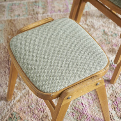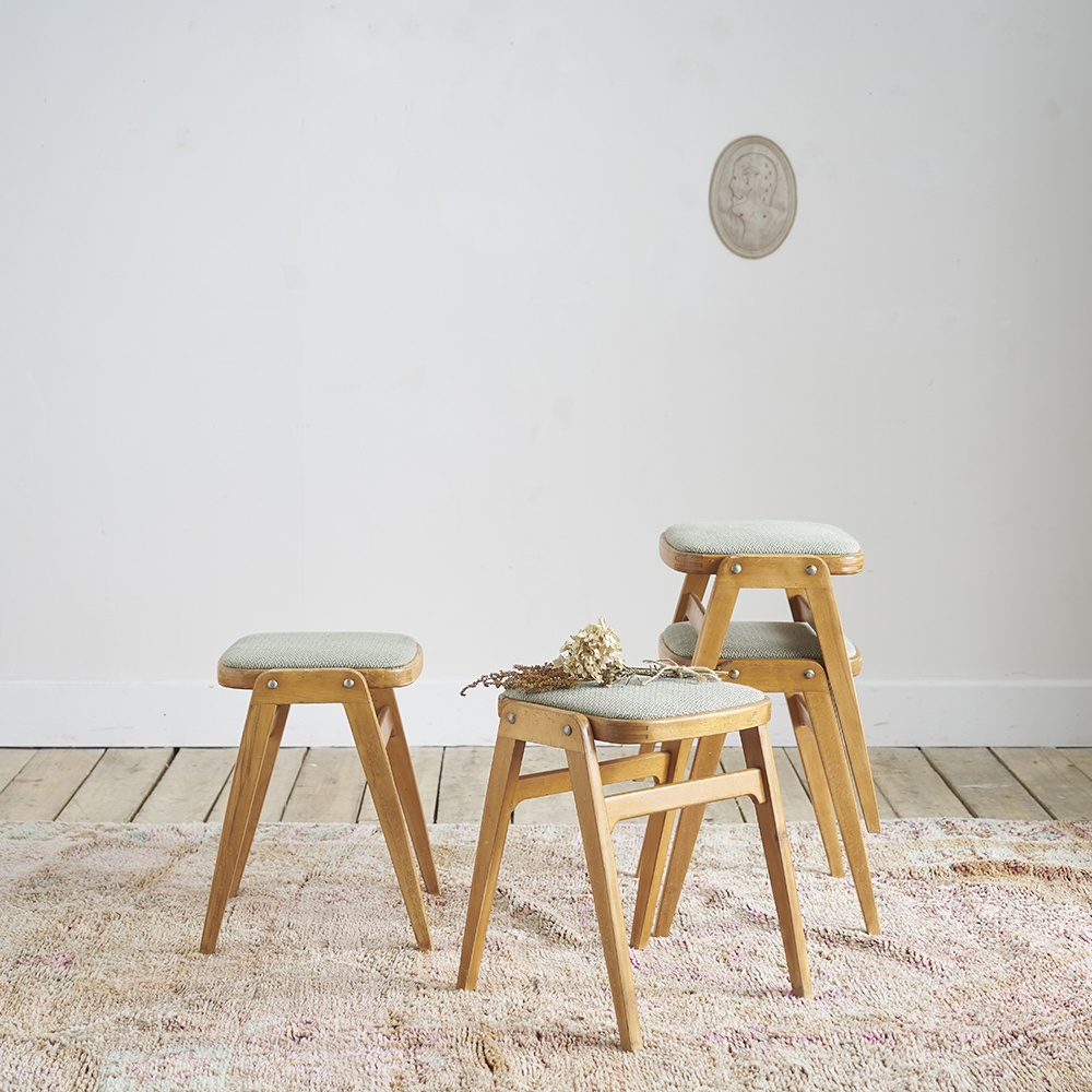 Tabouret solvay is a simple robust stool made of solid wood that reveals the designers signature at first glance. Its clear structural principles can be found throughout the work of jean prouve. Please be advised that this is part of the design.