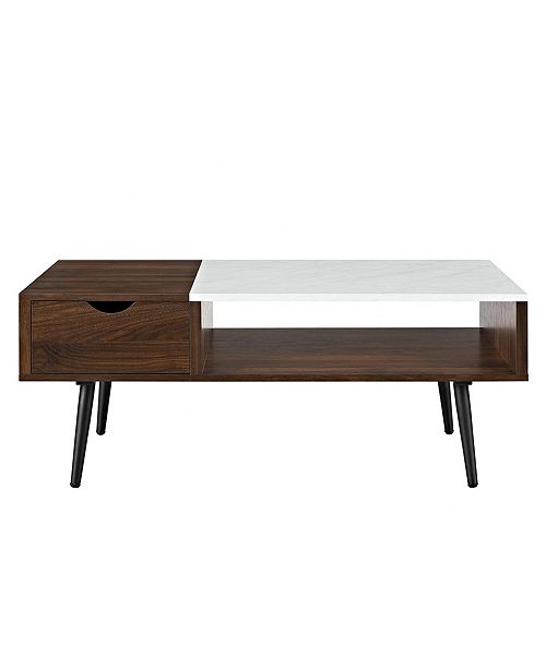 Walker Edison Wood And Faux Marble Coffee Table Dark Walnut