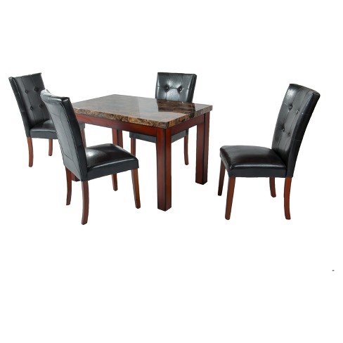 Modern 5 Pcs Dining Set Faux Marble Table Top Black Pu Chairs
