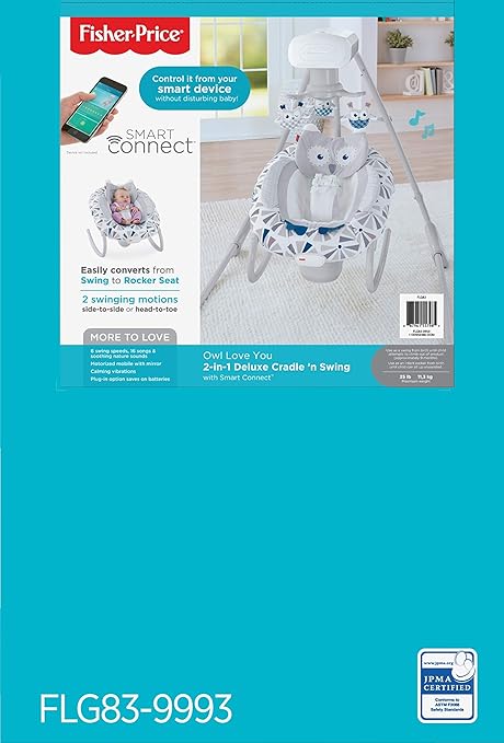 Fisher Price Owl 2 In 1 Smart Connected Deluxe Cradle N Swing In