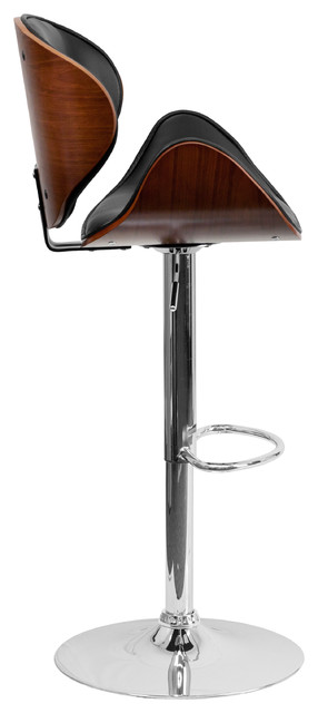 Flash Furniture Adjustable Bar Stool With Curved Seat In Walnut