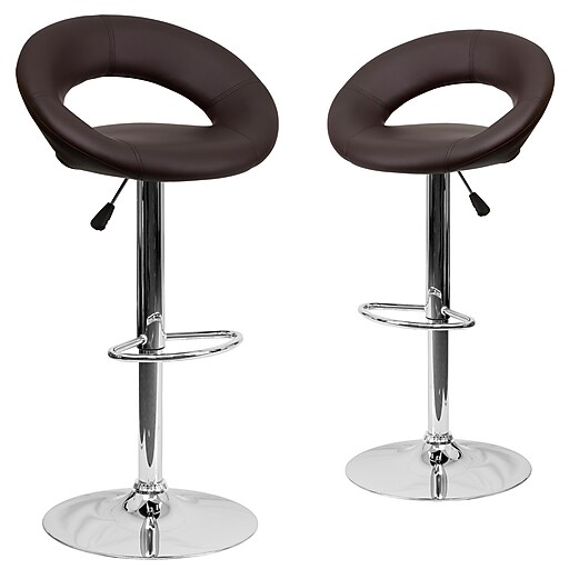 Flash furniture adjustable bar stool. Crafted from sleek chrome and classic vinyl these brown bar stools blend comfort and elegance to create the perfect seating solution for any space. Patio lawn garden. Outfit your home in luxurious style with a set of two adjustable bar stools.