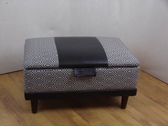 Genuine Black Leather Trim And Fabric Stool Etsy