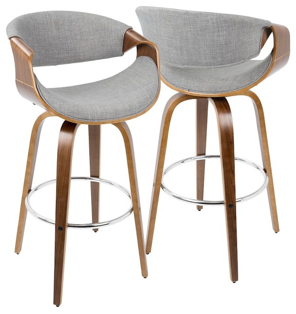 Curvini Mid Century Modern Barstool Walnut Wood And Gray Fabric