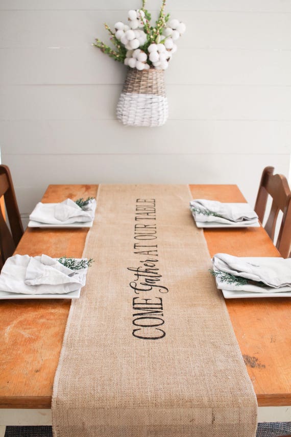 Come Gather At Our Table Burlap Table Runner Table Runner Etsy