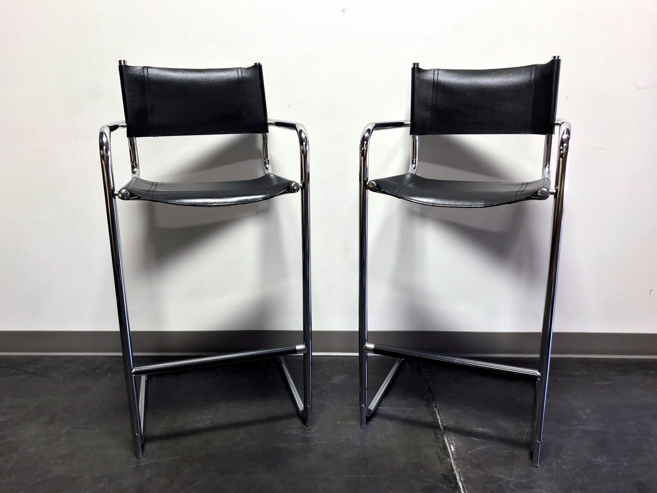 Mart Stam Chrome Black Leather Bar Stools Made In Italy