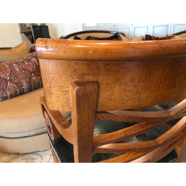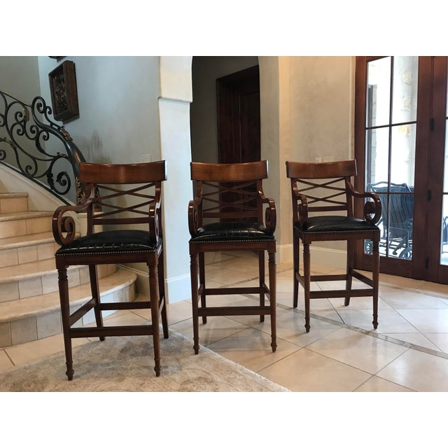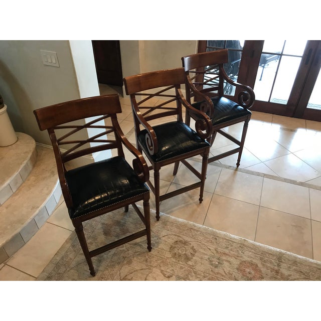 Baker Furniture Black Embossed Leather Bar Stools Set Of 3 Chairish