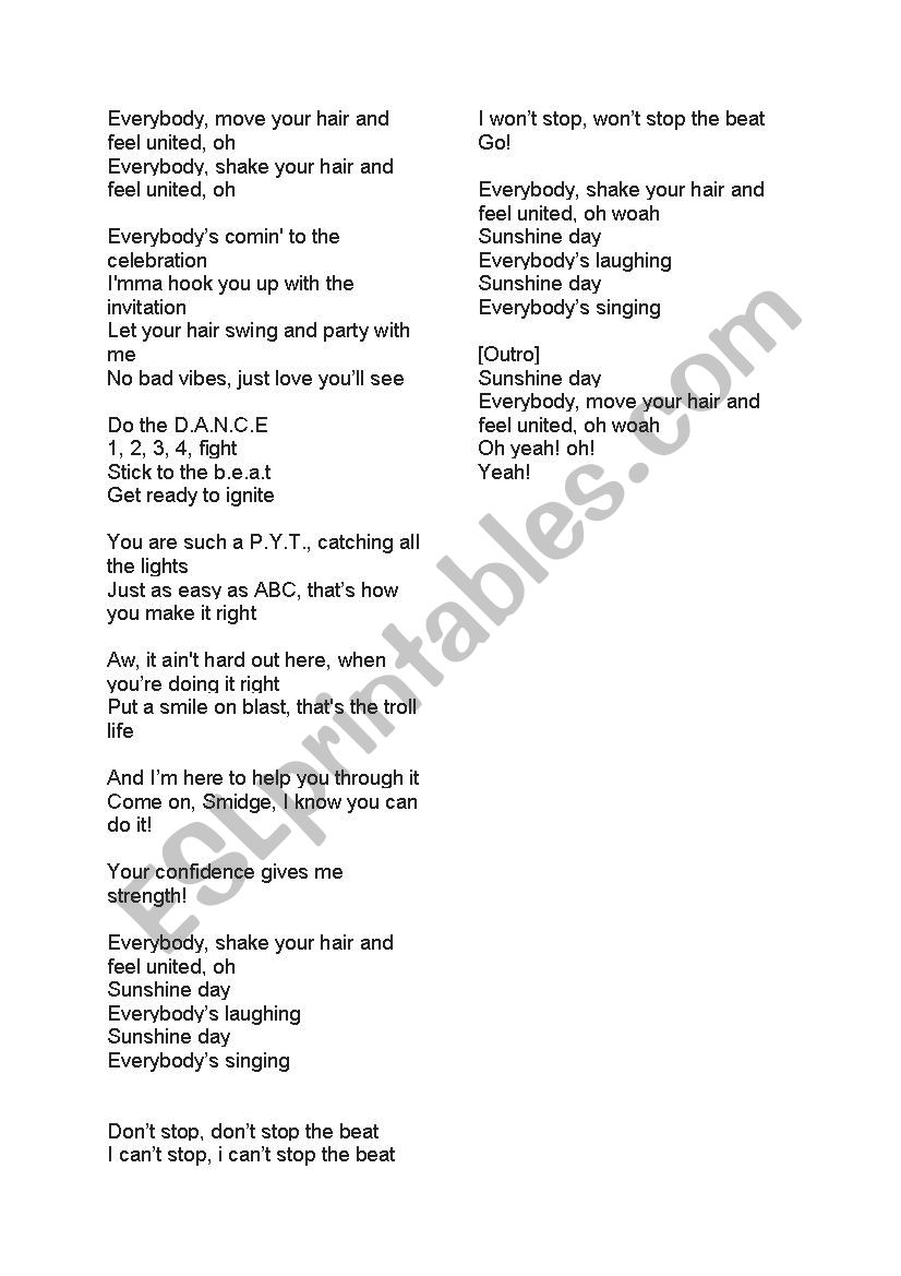 Lyrics Move Your Feet D A N C E It S A Sunshine Day Trolls