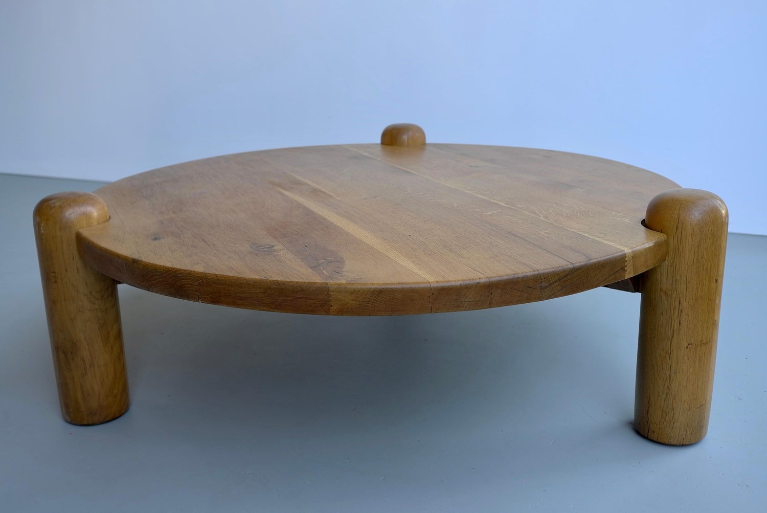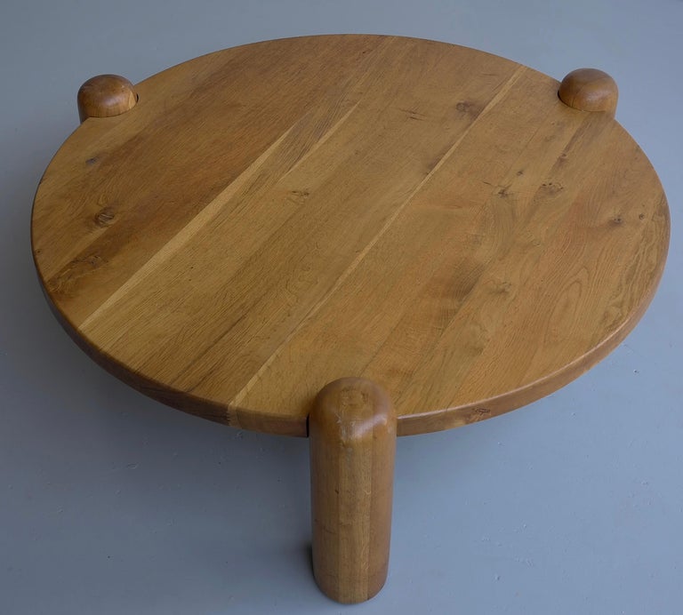Extra Large Oak Round Coffee Table In Style Of Charlotte Perriand