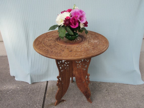 Side Table Vintage Fancy Ornate Carved Wood Natural Medium Etsy