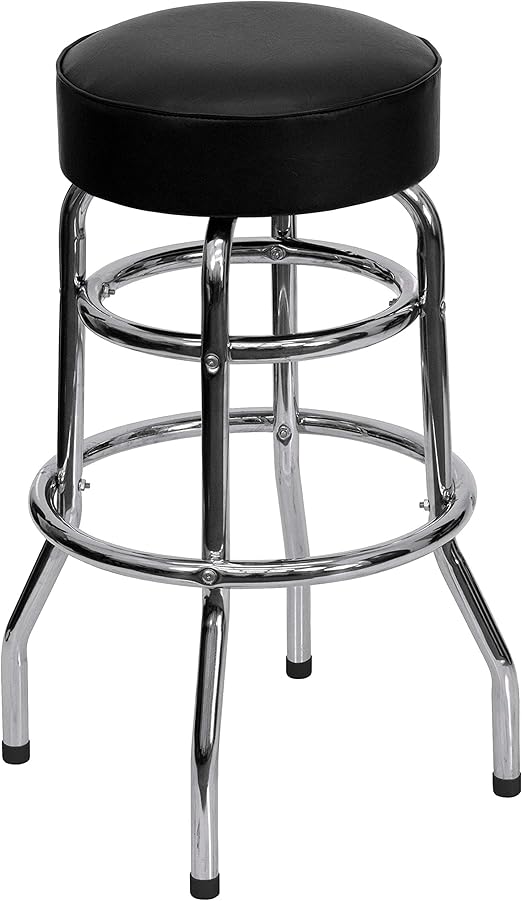 Amazon Com Flash Furniture Double Ring Chrome Barstool With Black