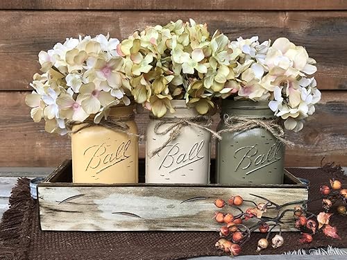 Amazon Com Fall Mason Jars In Wood Antique White Tray Centerpiece