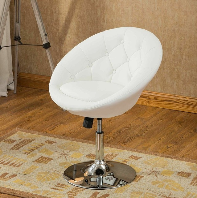 White Pedestal Swivel Chair Faux Leather Accent Height Adjustable