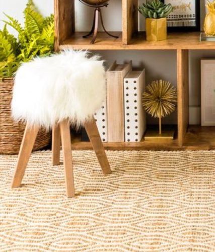 Rozier Geo Faux Fur Accent Stool Faux Fur Stool Stool Vanity Stool