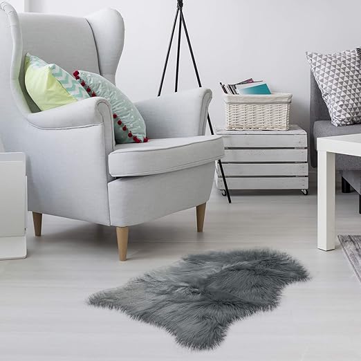 Amazon Com Faux Fur Sheepskin Rug Gray Furry Rugs For Vanity