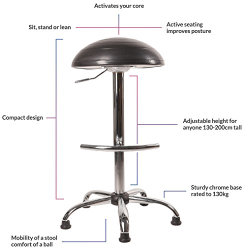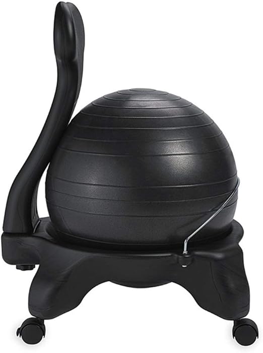 The idea of sitting on an exercise ball instead of a traditional office chair is that the instability of an exercise ball requires the user to increase trunk muscle activation and thus increase core strength improve posture and decrease discomfort. This exercise ball chair is 2 inches taller than a standard chair. Exercise guide balance ball stool.