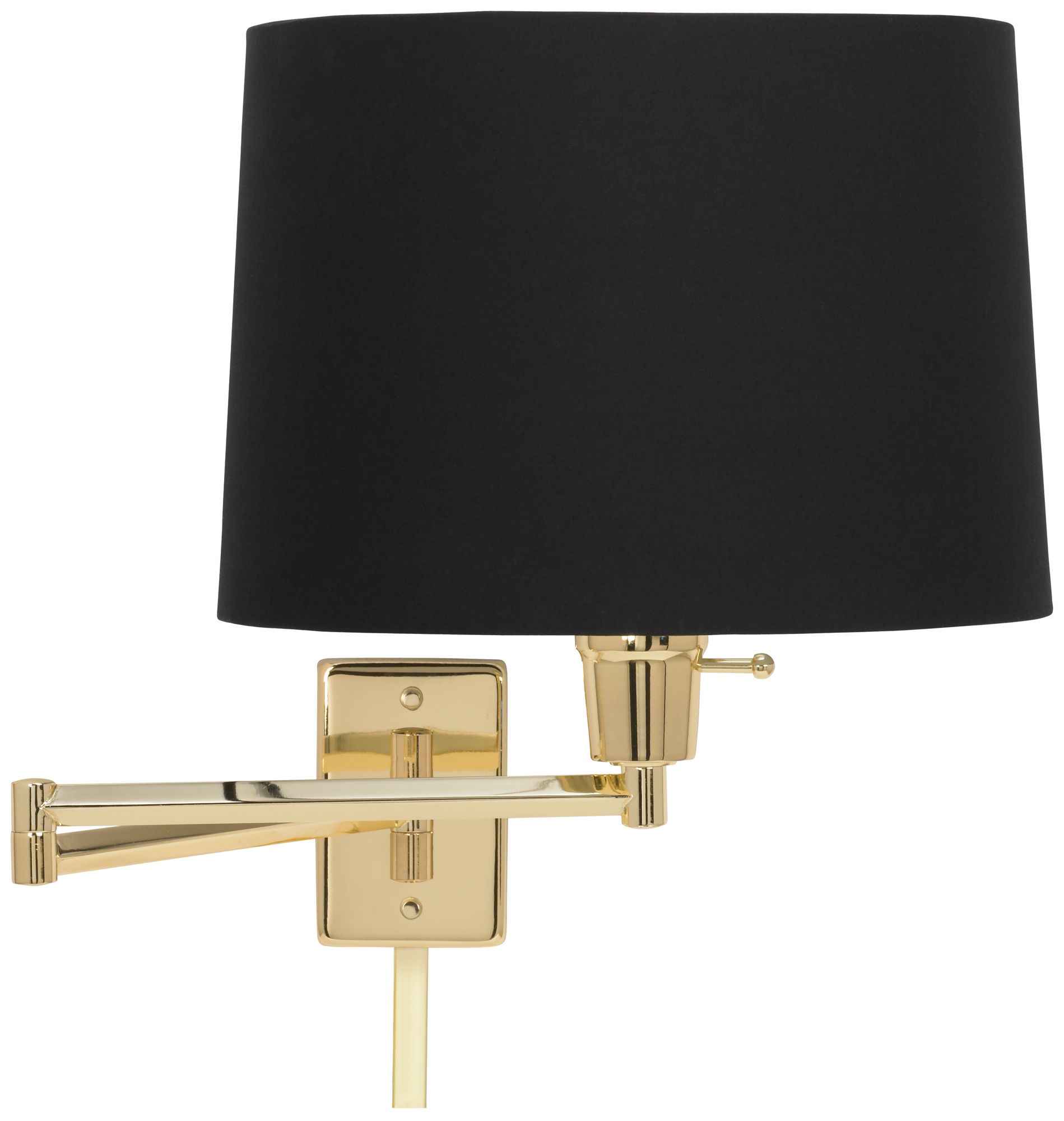 Black Fabric Drum Polished Brass Swing Arm With Cord Cover