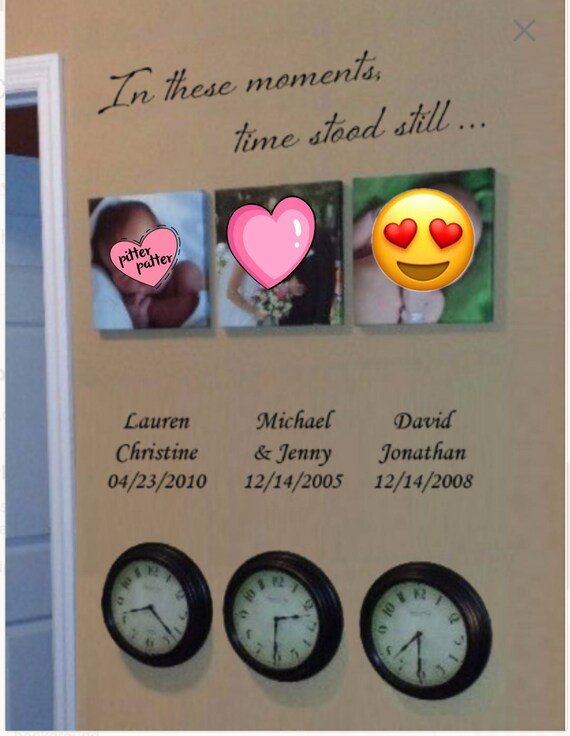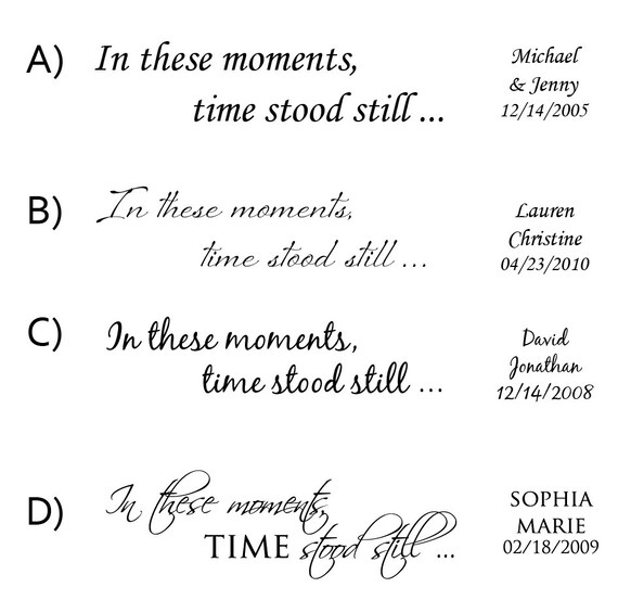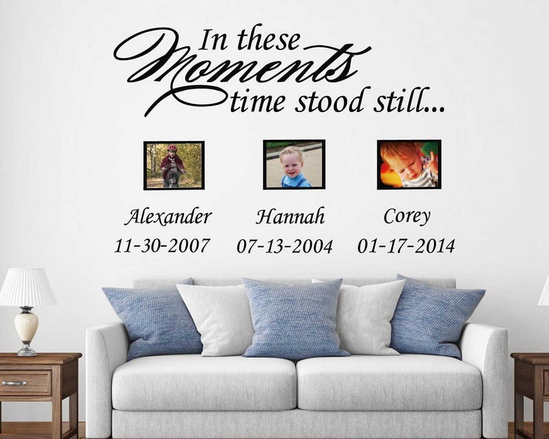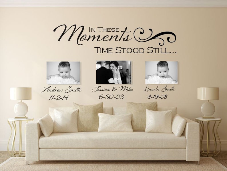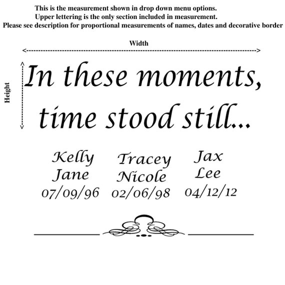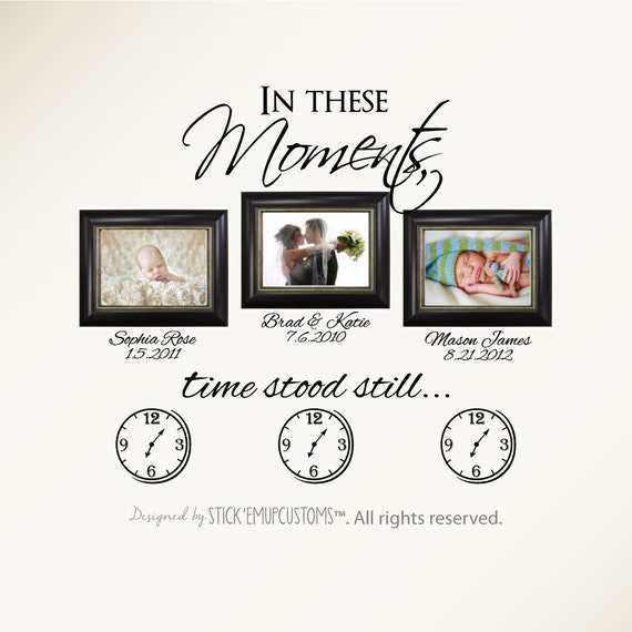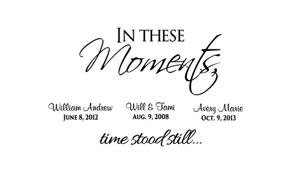 In these moments time stood still in these moments time stood still wall decal family decals family decal custom decals wall decor luxeloft 5 out of 5 stars 3642 2000 favorite. 38x24 personalized in these moments time stood still custom wall decal picture decor wedding birth words sticker names birthdates wall decal sticker house warming 50 out of 5 stars 5. Etsy is the home to thousands of handmade vintage and one of a kind products and gifts related to your search.