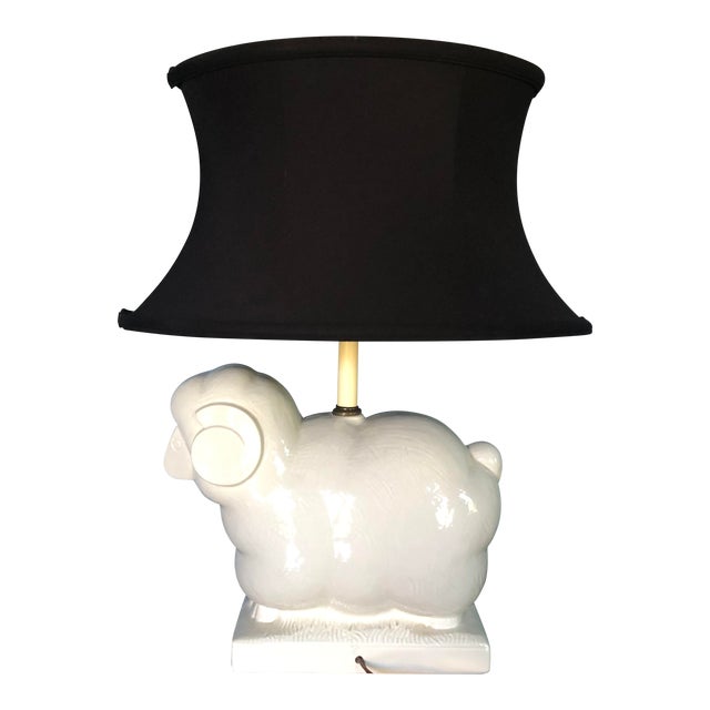 Pottery Barn Modern Sheep Ewe Ram Lamp With Custom Shade Finial