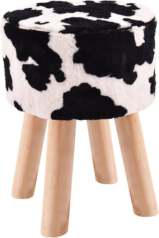 Amazon Com Faux Fur Round Stool Seat Cow Pattern Home Furniture