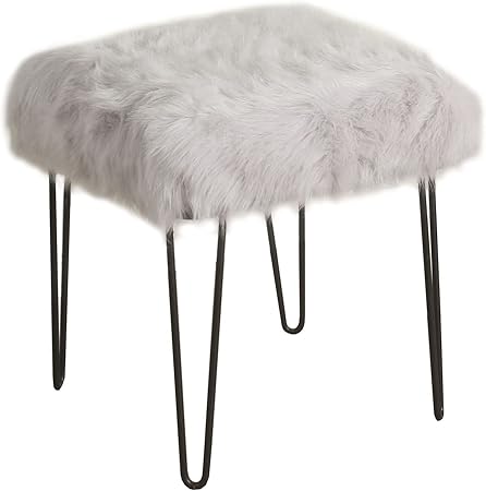 Birdrock home silver faux fur foot stool ottoman soft compact padded seat living room bedroom and kids room hair pin metal legs upholstered decorative furniture rest vanity seat. Skip to main content. Cardinal crest modern round ottoman foot rest stool luxurious faux fur covered seat wsturdy gold hairpin legs easy assembly accent furniture perfect for use in any room white color.