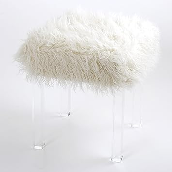 Amazon Com Glitzhome White Faux Fur Acrylic Bench With Acrylic
