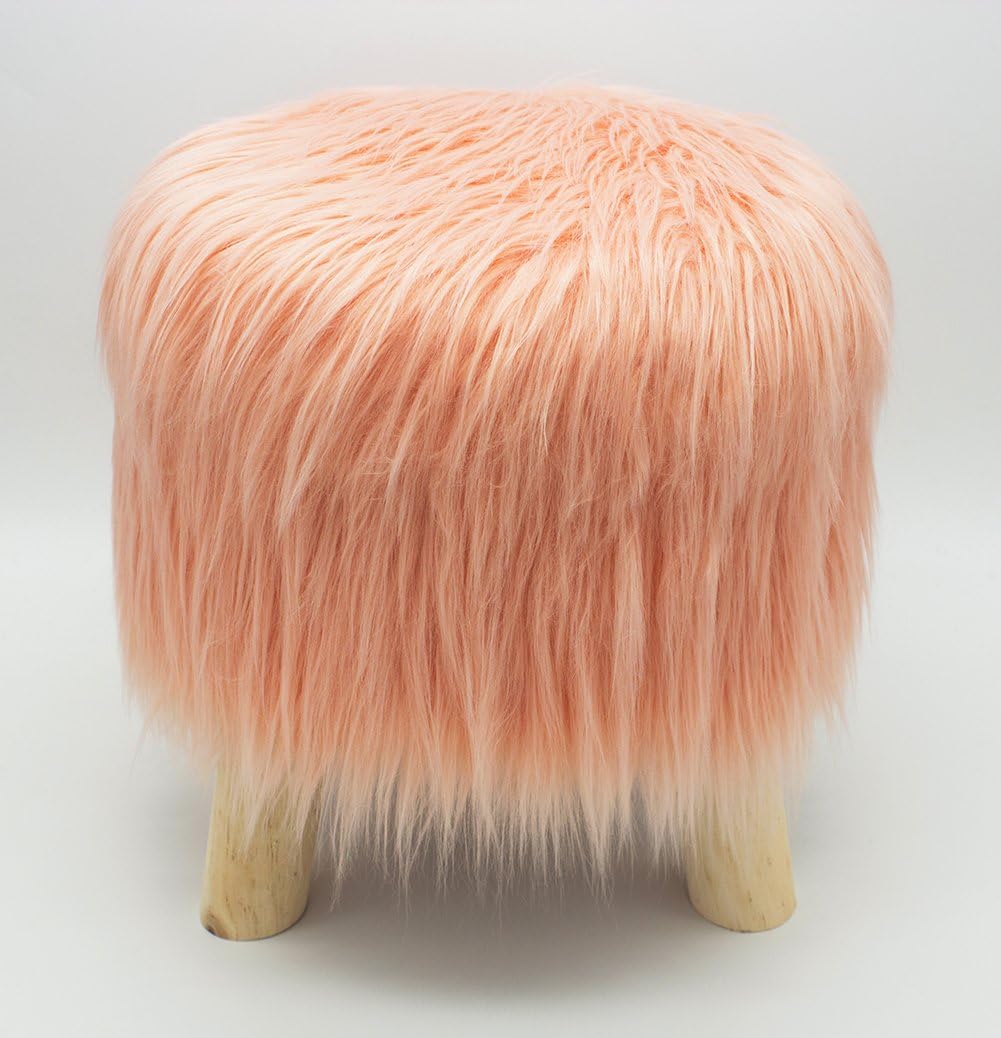 Amazon Com Fennco Styles Mongolian Long Hair Faux Fur Stool Rose