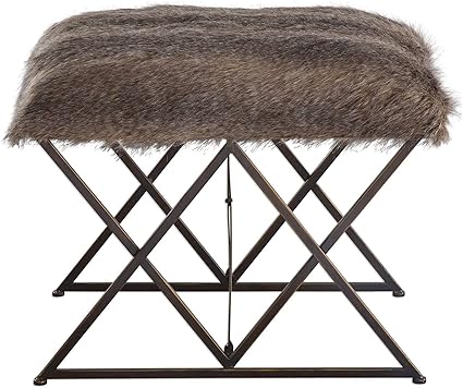 Amazon Com Deco 79 Metal Faux Fur Stool 26 W 20 H Gray Silver