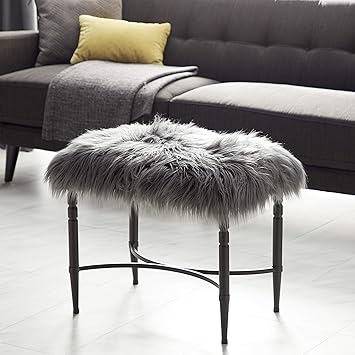 Amazon Com Fennco Styles Mongolian Long Hair Faux Fur Stool Grey