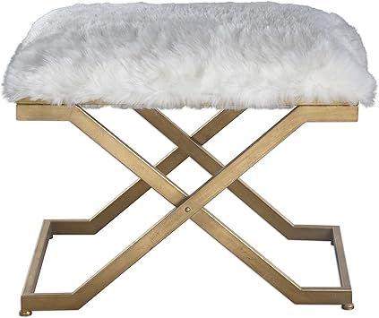 Amazon Com My Swanky Home Glam Plush Faux Fur Shaggy White Bench