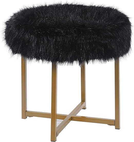 Amazon Com Homepop Round Faux Fur Stool With Metal Base Black