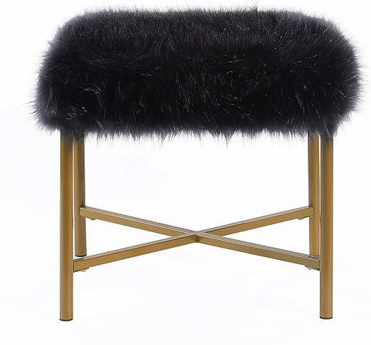 Amazon Com Homepop Faux Fur Square Stool With Metal Legs Black