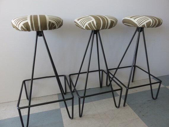Three Frederick Weinberg Iron Bar Stools With Swivel Seats And Etsy