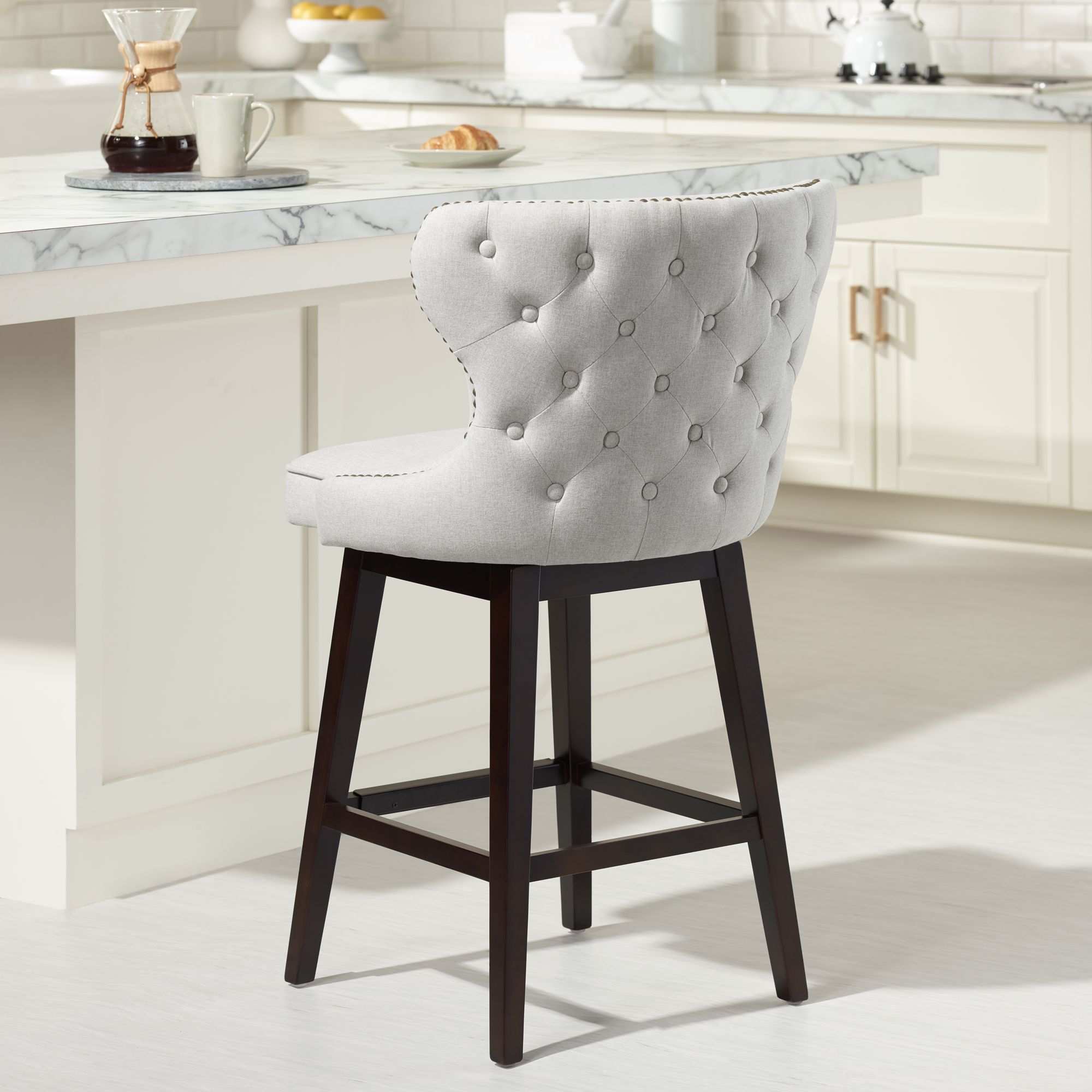 Leonice Fabric Button Tufted 29 Swivel Bar Stool Gray Set Of 2