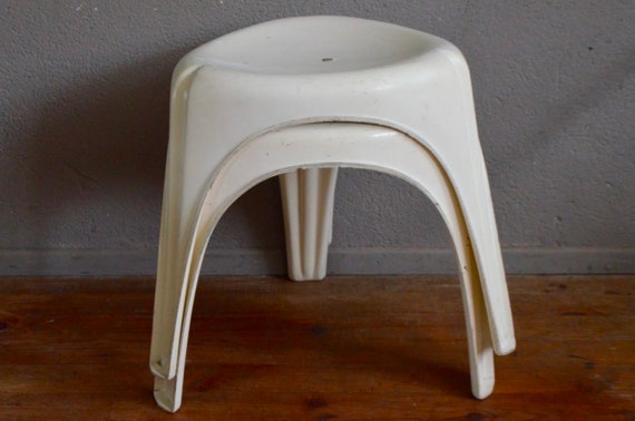 Pair Of Stools Vintage Fiberglass White Spage Age Futuristic Etsy