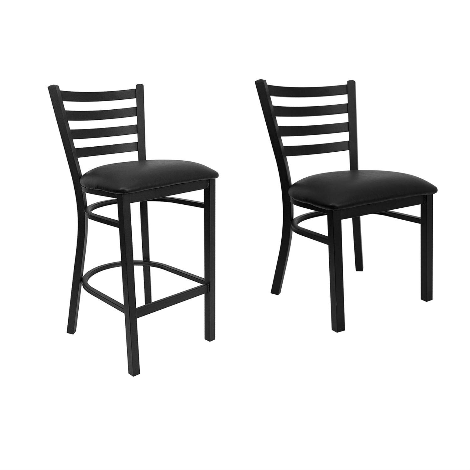 Flash furniture hercules series black x back metal restaurant barstool black vinyl seat black ladder back metal restaurant bar stool black vinyl seat xu dg697blad bar blkv gg lavon 24 counter stools black and espresso set of 2. Flash furniture hercules series black window back metal restaurant barstool black vinyl seat support bars two curved support bars give the chair great strength and durability as well as a built in footrest.