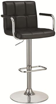 Coaster Adjustable Bar Stool With Arms In Black Faux Leather For