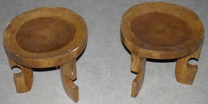 Set Of 2 Ethiopian Wood Stools From Ethiopia Solid Carved Wooden