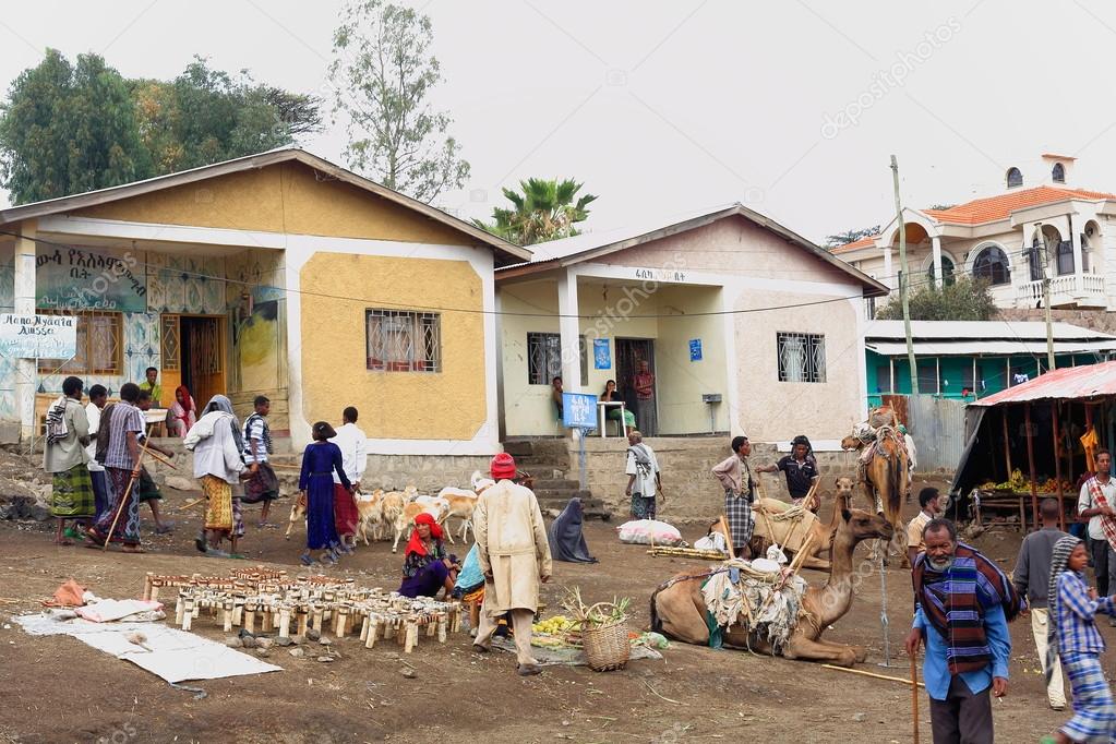 Stools Fruit Sugarcane Selling Stalls Gerba Town Ethiopia 0118