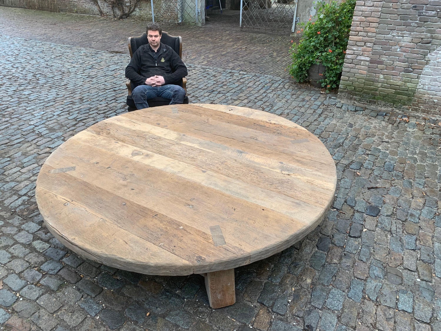 Extremely Large Natural Cleaned Solid Oak Round Coffee Table Low