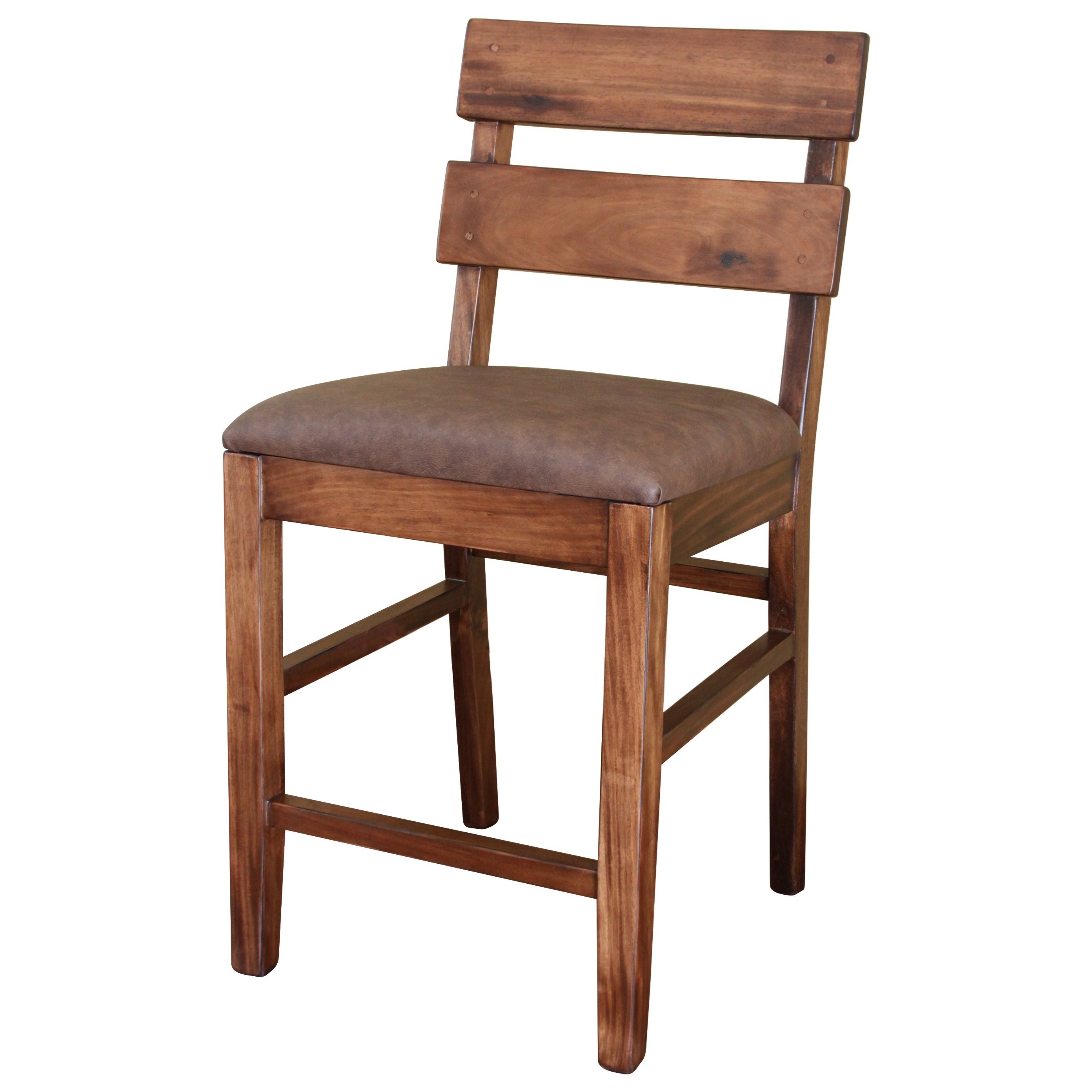 Buffed Pecan Wood Fastback Counter Height Stool W Ivory Faux