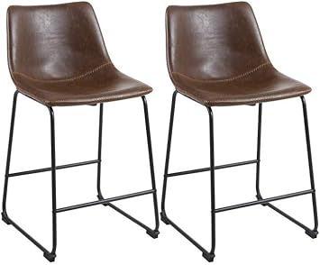 Walker Edison Furniture Co Brown Faux Leather Counter Stools Set