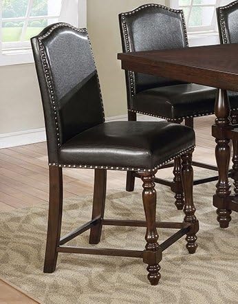 Wood Black Faux Leather Counter Height Bench In Antique Walnut