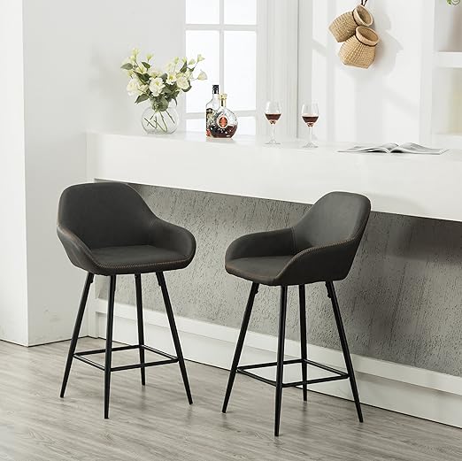 Modern Faux Leather Chair Set Of 2 Contemporary Bar Stools