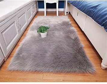 Faux Fur Sheepskin Rug Silver Furry Rugs For Vanity Seats