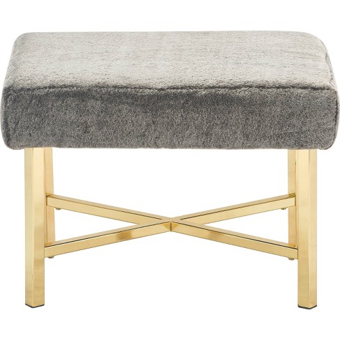 Lennox Vanity Stool Gray Faux Fur And Gold Adore Dcor Target