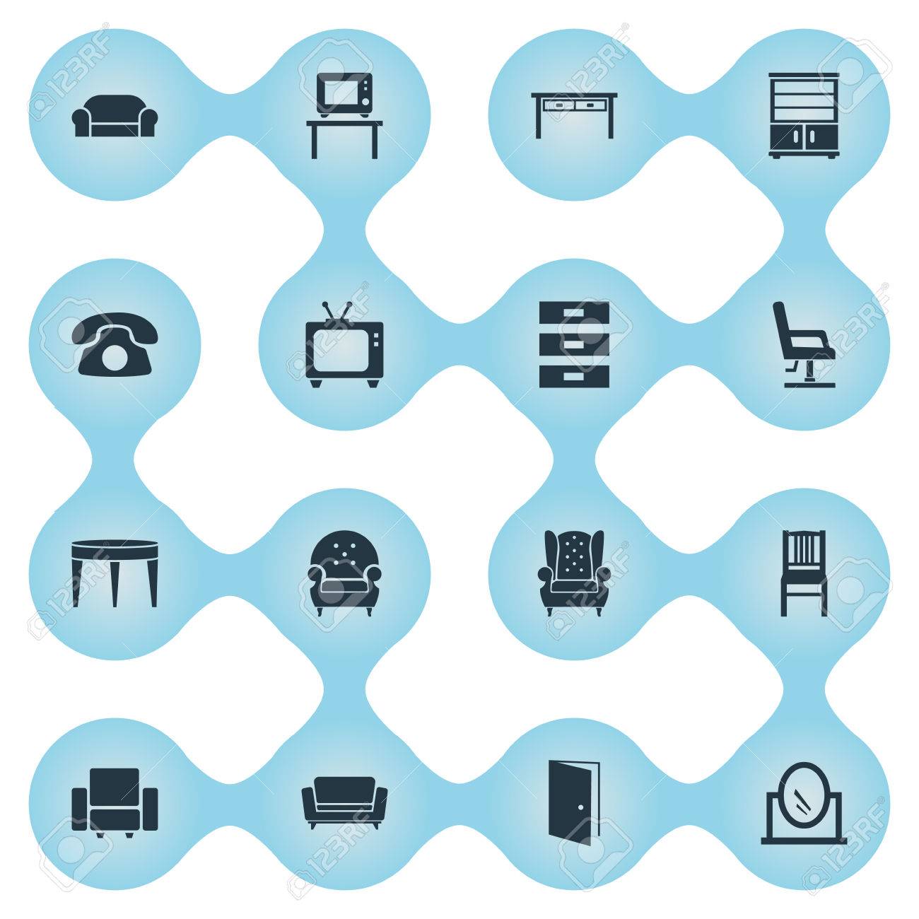 Colorful Chairs Icon Set Home Seating Furniture For Living Room