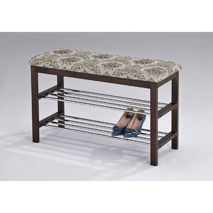 Walnut Wood Shoe Bench Fabric Floral Design Seat Cushion Legacy