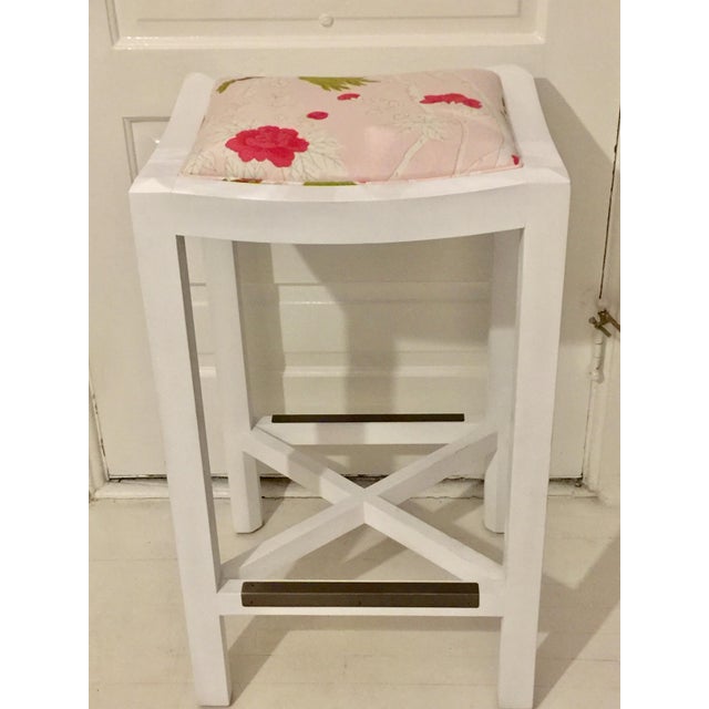 Lee Industries White Maple Pink Floral Fabric Bar Stool Chairish